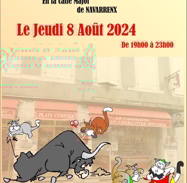 Michel Bonnefon a réalisé plusieurs affiches devenues familières dans le paysage local. À travers ses créations pour Jean Pierre Casamayou, grande figure de la boucherie Casamayou à Navarrenx, son trait fait le lien entre Jasses et Navarrenx, entre amitié, artisanat et mémoire vivante.